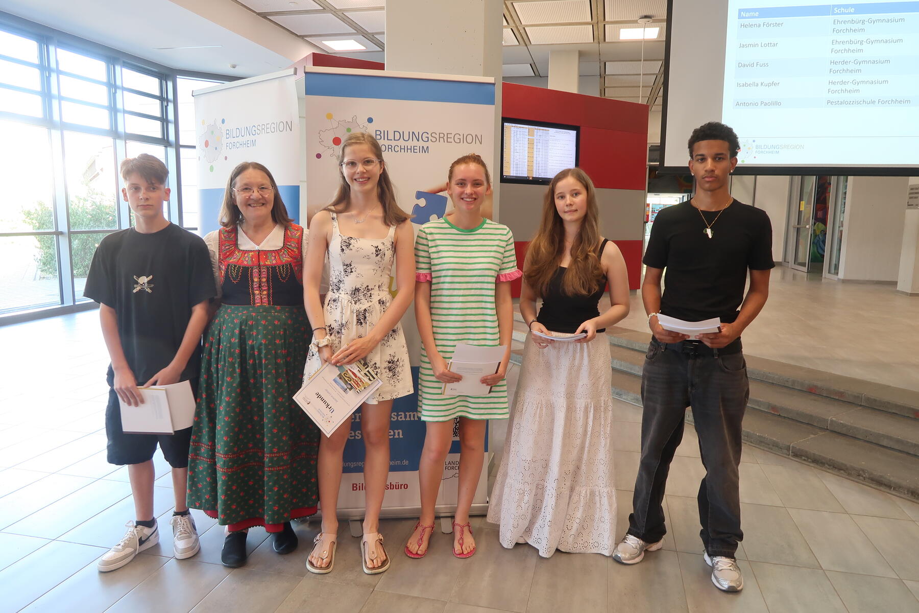 5. bis 7. Klasse: Johannes Mollwo (Herder-Gymnasium Forchheim), Eva Prezlic (Ehrenbürg-Gymnasium Forchheim), Jasira Widmer (Pestalozzischule Forchheim), Moritz Bayer (Ehrenbürg-Gymnasium Forchheim), Tim Grube (Herder-Gymnasium Forchheim), Luiza Dragu (Ritter-Wirnt-Realschule Gräfenberg)